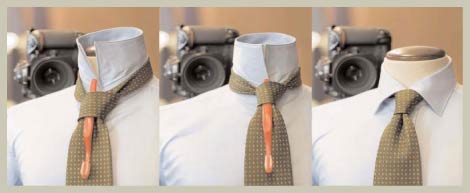 Un giorno entra in negozio un signore molto distinto che mi chiede un abito. Durante le prove parliamo anche di cravatte, descrivo la nostra qualità e il discorso poi arriva al tipo di nodo utilizzato.